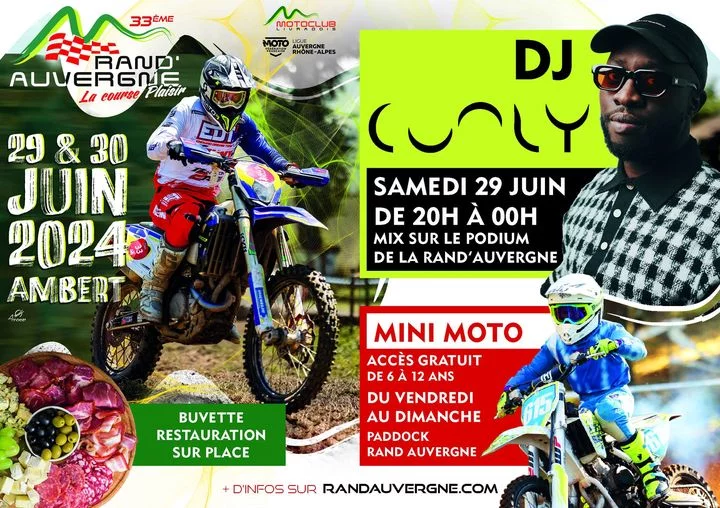 Durant les 3 jours de la Rand’Auvergne, venez profiter gratuitement de la piste mini moto pour faire découvrir à vos enfants les joie de la moto (6 à 12 ans) Samedi soir, en plus de la traditionnelle ambiance festive de la Rand’Auvergne, DJ Cooly sera à nos côté pour un MIX sur le podium ! […]