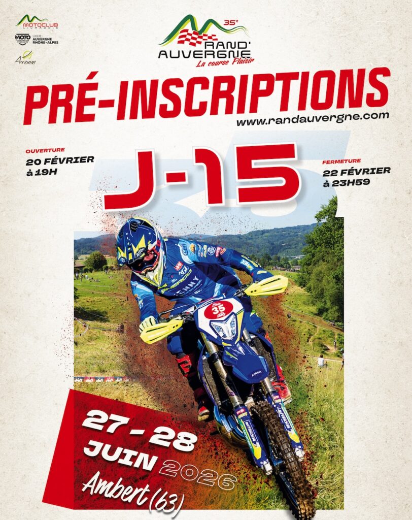 Le compte à rebours avance et petit à petit aussi la date des pré-inscriptions pour participer à la Rand’Auvergne 2026, 35ème édition, s’approche irréversiblement. Ainsi, en ce Jeudi 5 Février nous sommes à J moins 15 avant cette ouverture qui ne durera que quelques jours. Alors si vous souhaitez être au départ dès le Samedi […]