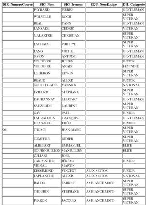 Liste catégorie Equipe de 3