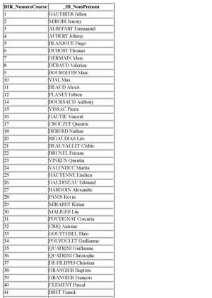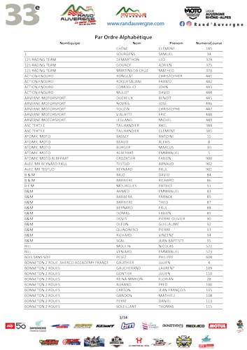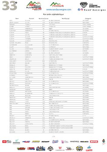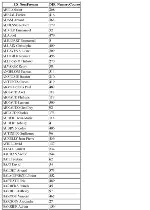 Numéros de course par ordre alphabétique