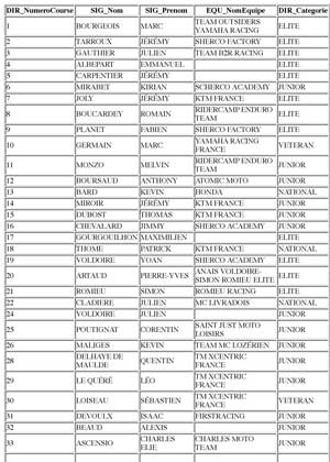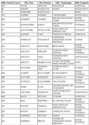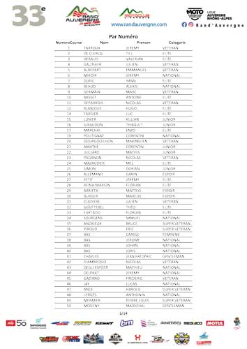 Engagés par numéros de course