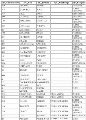Liste des participants par N° de course